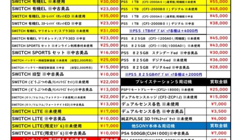 買取情報ゲーム機本体周辺機器買取チラシを更新しました‼️ 在庫がないので 特にスイッチ各種未使用品 を 大募集‼️‼️‼️‼️ こちらの金額は 新潟黒埼店(以前からある旧新潟本店・フジ・コーポレーション様向かい)限定の特別価格と…