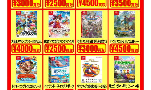 買取情報ゲームソフトのチラシに掲載されている商品を複数お持ち込みでプラスアップさせていただきます! ぜひお待ちしてますm(__)m❗️ ※2025/1/2現在の価格となります。 在庫状況・状態によってお値段が変動いたします。予め…