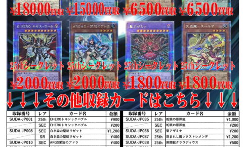 買取情報今年最後の告知更新になります! 一部金額が上がってますのでこのチャンスをお見逃し無く!( ・ω│チラッ また、来年度もガンガン告知かけていきますのでよろしくお願いいたしますm(*_ _)m 遊戯王の買取、販売はぜひおたち…