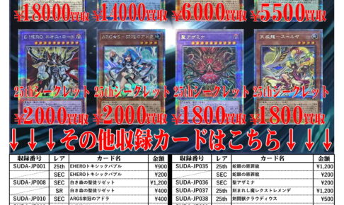 買取情報お待たせしました! 今回はスプリーム・ダークネスの収録カードが告知に載ってます! 中でも個人的には新規テーマのARGS面白いんじゃないのかな?って思ってます😂ꉂ(ˊᗜˋ*) さらに今回も継続!25thシークレットの最低買…