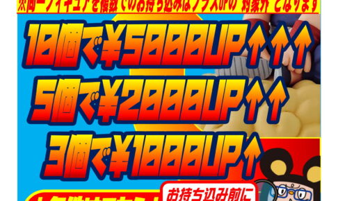買取情報おもちゃ部門より 下記の買取告知7月版を追加いたしました〜‼️🎊🥳🎉 ◯鬼滅の刃フィギュア ◯SMSP孫悟空DAIMATURI ◯ワンピース一番くじ ◯ワンピースP.O.P ◯CFBスタンダードモデル ◯モンハン一番くじ…