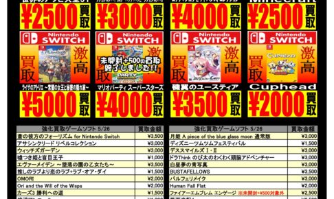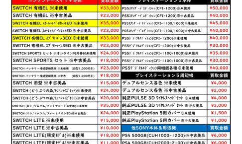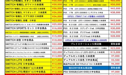 買取情報ゲーム機本体周辺機器買取チラシを更新しました! 特にスイッチ有機ELモデル 未使用品を大募集中です‼️ ちなみに掲載にはないのですが ゲームボーイアドバンス、アドバンスSP本体中古品、 ポケモンのアドバンスソフト各種も …