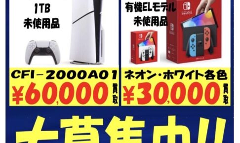 買取情報ゲーム機本体周辺機器買取チラシを更新しました! 特にスイッチ有機ELモデル 未使用品ネオンを大募集中です‼️ ゲーム機本体未使用品の受付時間 12/13 朝9時から20時 12/14 朝9時から17時 ちなみに掲載にはな…