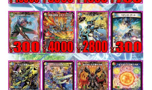 買取情報今年もあとわずか! 1月発売のアドレナリンパックのために資金調達に来ませんか???( ̄▽ ̄)ニヤリッ 今回は合計12コも告知のチラシを作っちゃいました! 売り場もそれに合わせてチェンジ!! 現在少しずつにはなりますがどん…