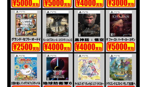 買取情報ゲーム機本体周辺機器買取チラシを更新しました!🎮🎮 今回は全体的に大募集中です! 5/1〜5/6まで ゲーム機本体未使用品は朝9時から18時まで ゲーム機本体中古品やゲームソフトその他は15時から18時まで 混雑緩和のた…