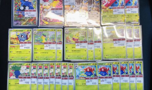 本日、ポケカ新弾シングルカード買取&品出いたしました〜‼️🎉🤩🎊 当店へお持ち込みいただきありがとうございます❗️😭 買い取らせていただいた、画像のカードはショーケースにて販売中となっております‼️✌️ ぜひカードコーナ…