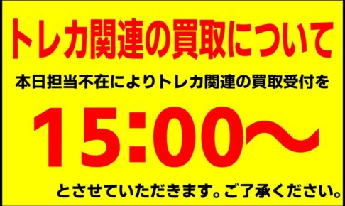 買取情報12月ももちろん高価買取! 告知以外のカードも沢山お持ち込みください! 毎週月曜日と木曜日以外は基本的に担当者がおりますので担当者に見てもらいたい!って人はぜひこちらの曜日以外の16時以降にお越しください!全力査定致しま…