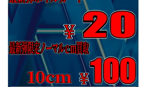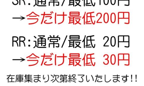 買取情報今月の告知は合計4枚! これから増えるかも?? 告知外のカードも、もちろん!高価買取中!! 毎週水曜日と木曜日以外は基本的に担当者がおりますので担当者に見てもらいたい!って人はぜひこちらの曜日以外の16時以…