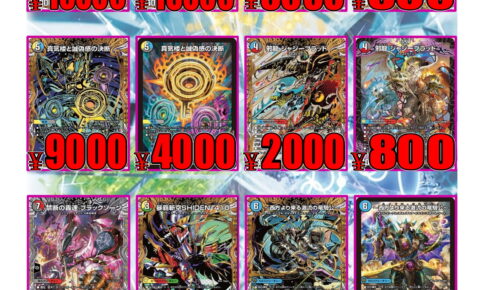 カードデュエルマスターズコーナーから最新情報! 本日、品出しするのはこのカードたち! やっとモルトDREAMが入ります! 他にもレートちょっと高めのカードもあります! 現在ショーケースに入っておりますのでお気軽にお声掛けくださ…