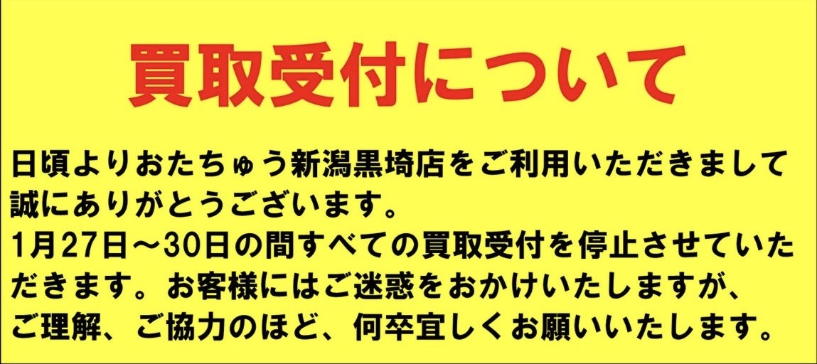 誠に勝手ではございますが、1月27日〜30日までの間、買取を停止させていただきます。