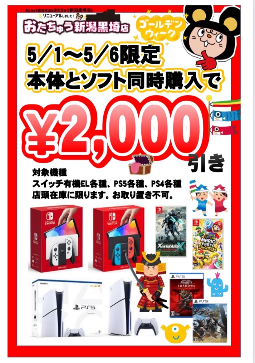おたちゅう 新潟黒埼店ゴールデンウィーク!!