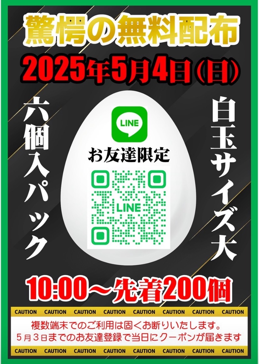 ⭐️LINEお友達限定 たまご先着200個無料配布【5/4】