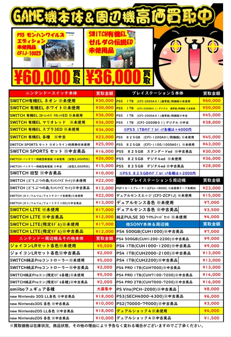 ゲーム機本体周辺機器買取チラシを更新しました!🎮🎮
