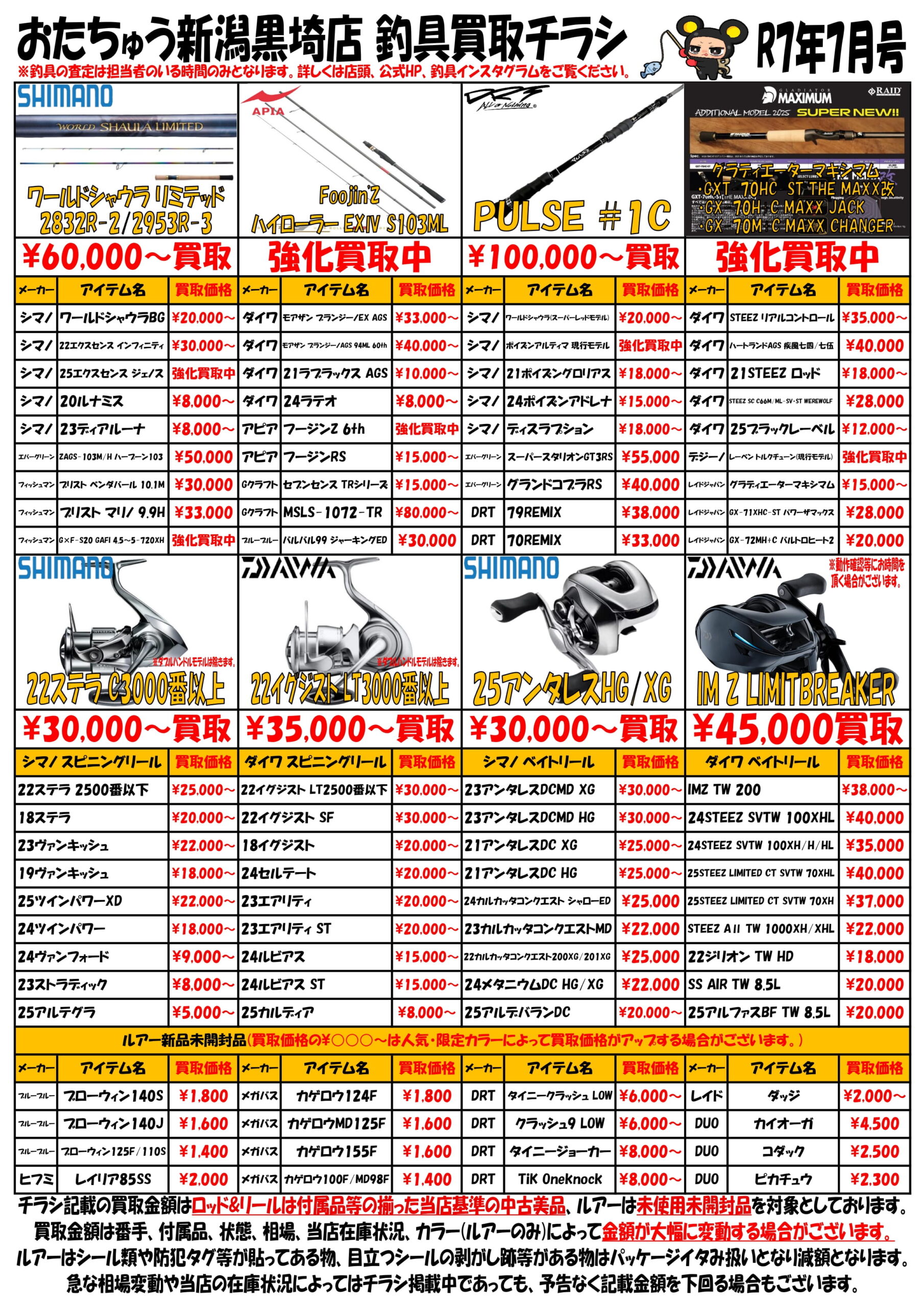 ■釣具買取チラシ更新🔥■ 2025年7月4日釣具買取チラシ更新しました🔥ロッド&リール人気モデル高価買取中‼️ ぜひ一度…ぜひ一度お持ち込みください🙇♂️ 買取お待ちしております💁♂️ ※2025/7/4現在の価格となります。在庫状況・状態によってお値段が変動いたします。予めご了承ください。****************こちら↓もぜひチェックしてみてくださいね♪(*´▽`*)・最新のイベント情報はこちら・最新の買取情報はこちら