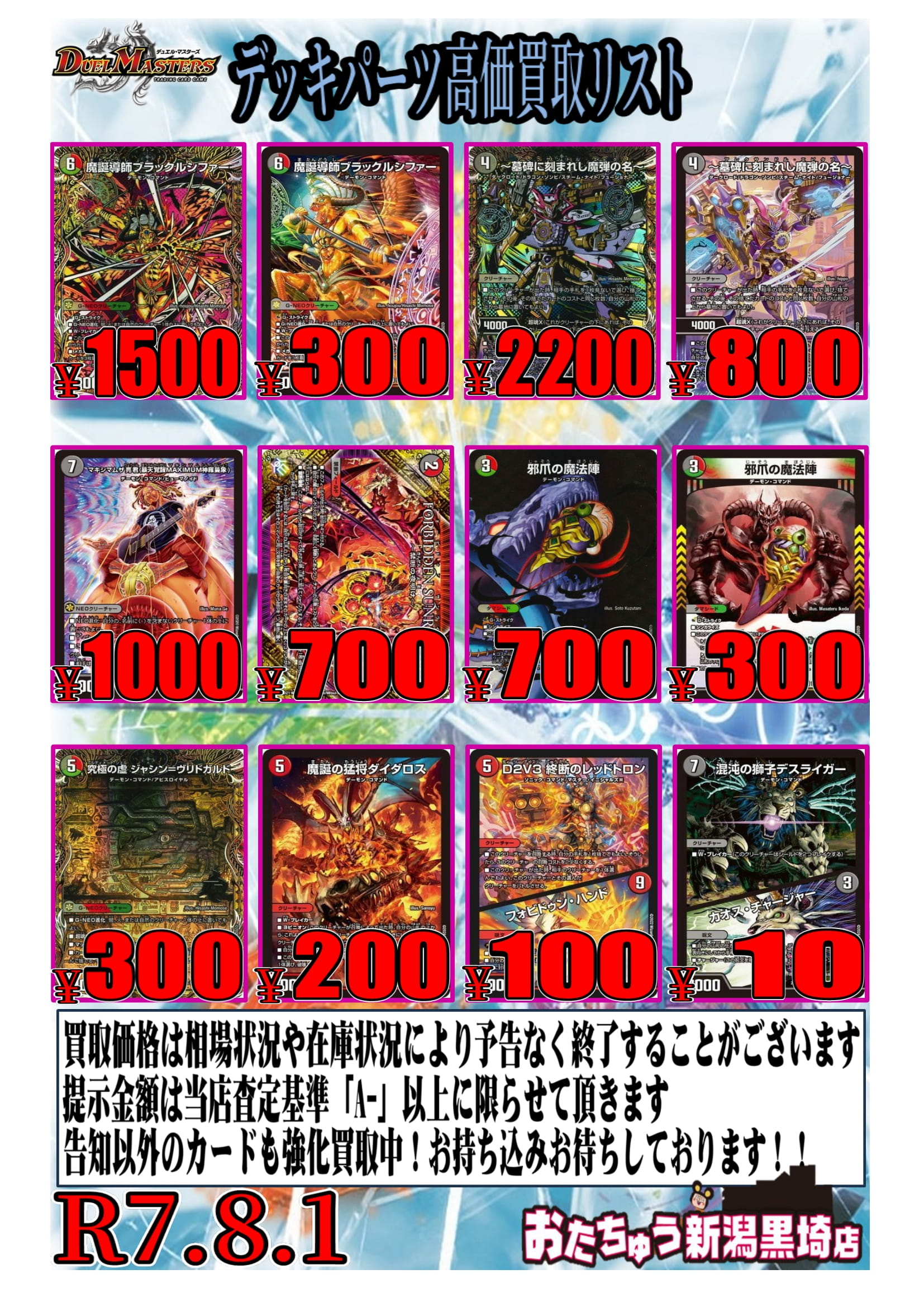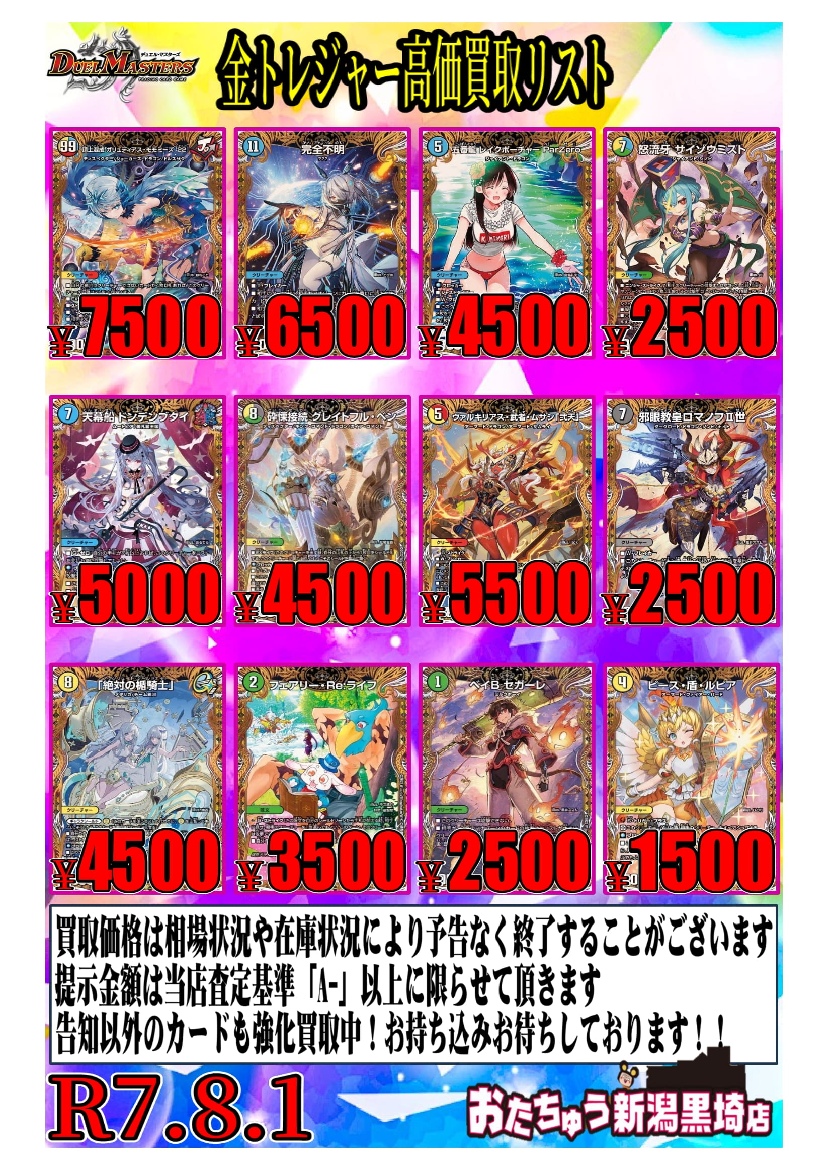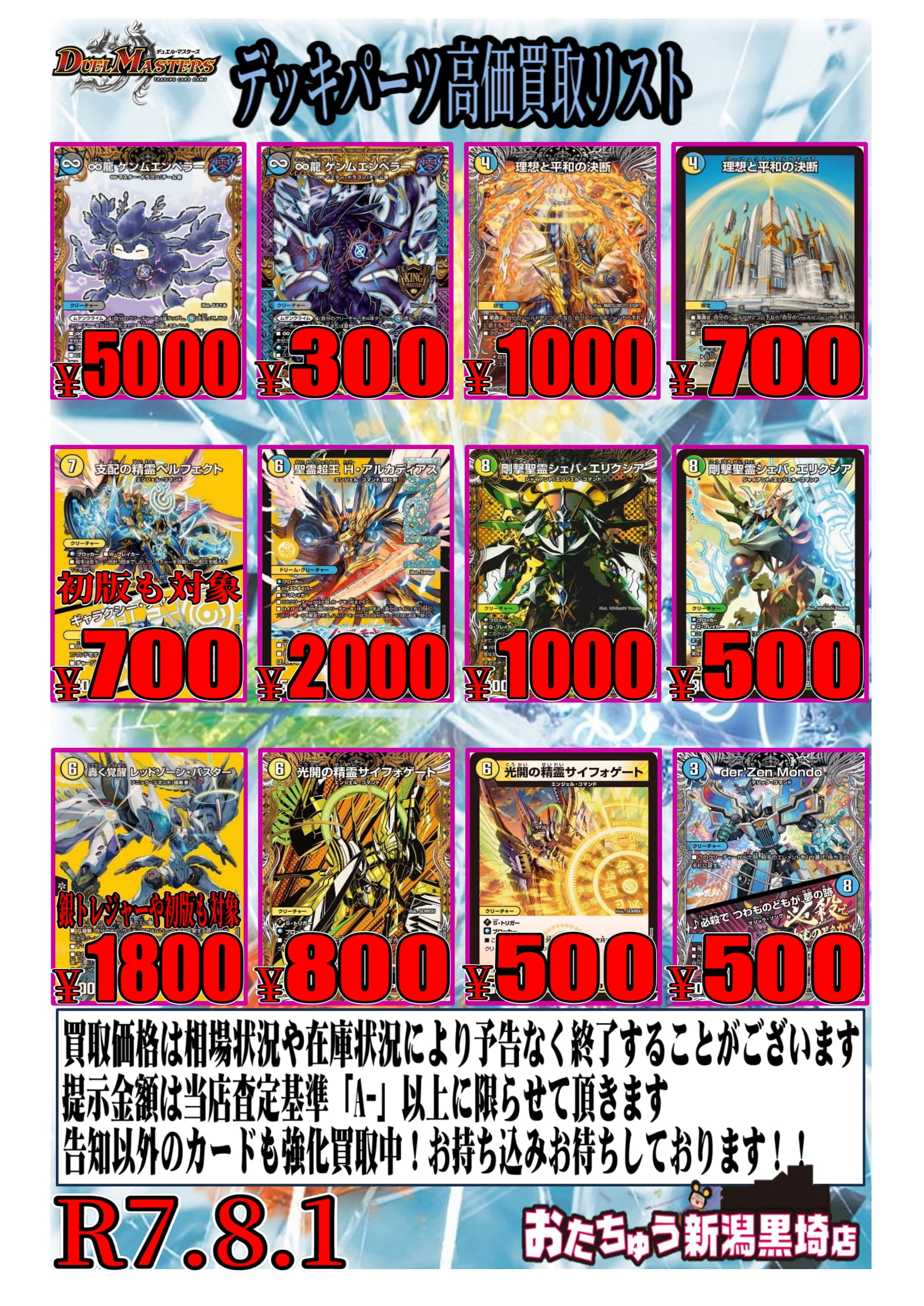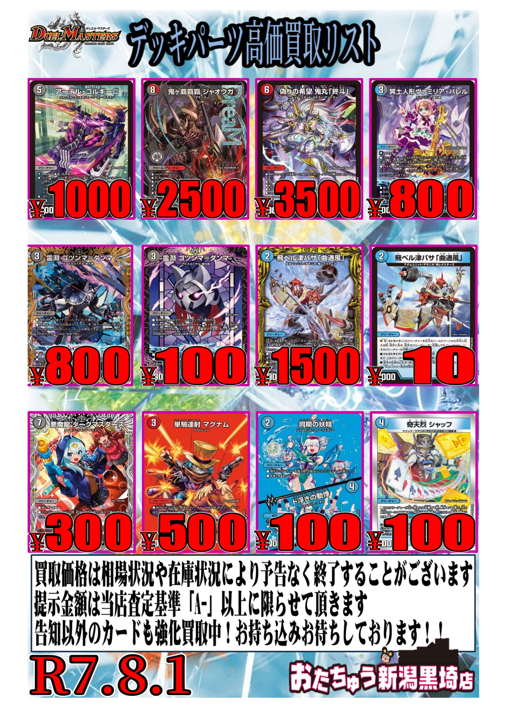 デュエルマスターズの買取時間が16時からと限定されておりご不便をおかけしておりますが是非ともおたちゅう新潟黒崎店へお持ち込みお願いいたします!!!m(*_ _)m