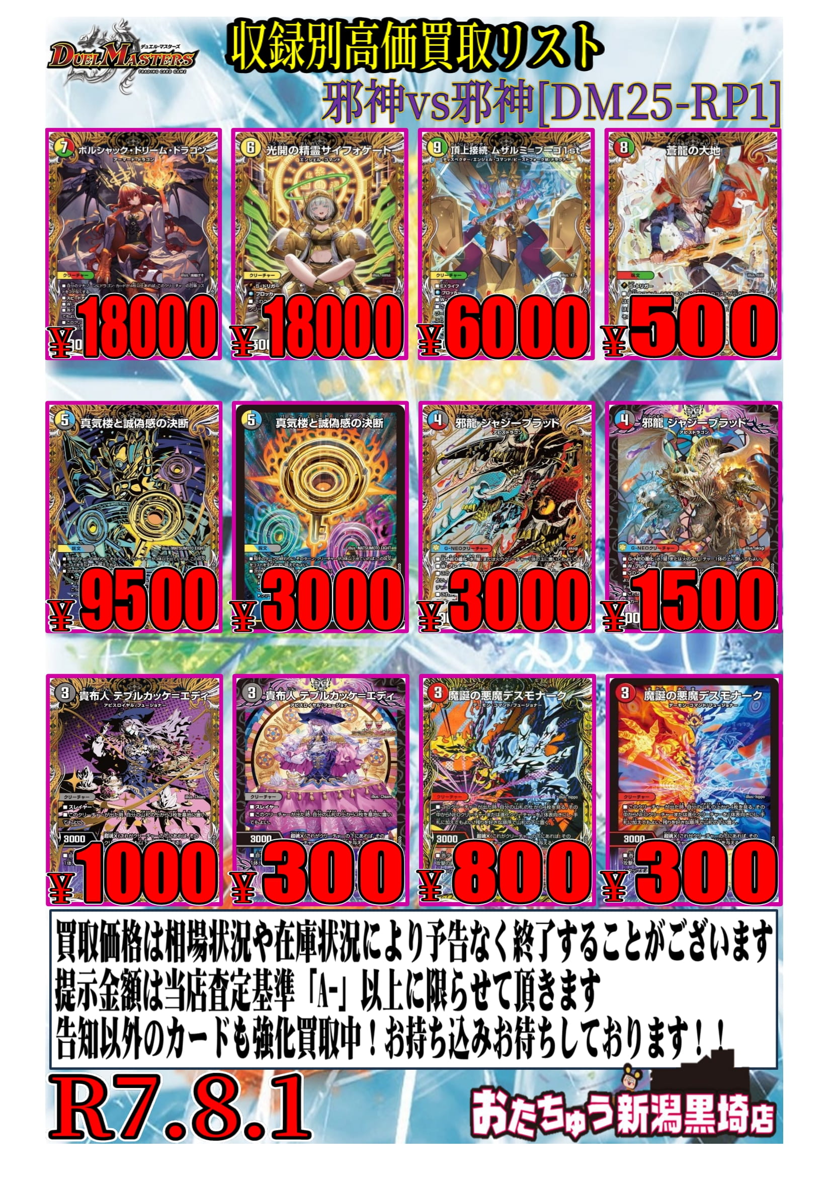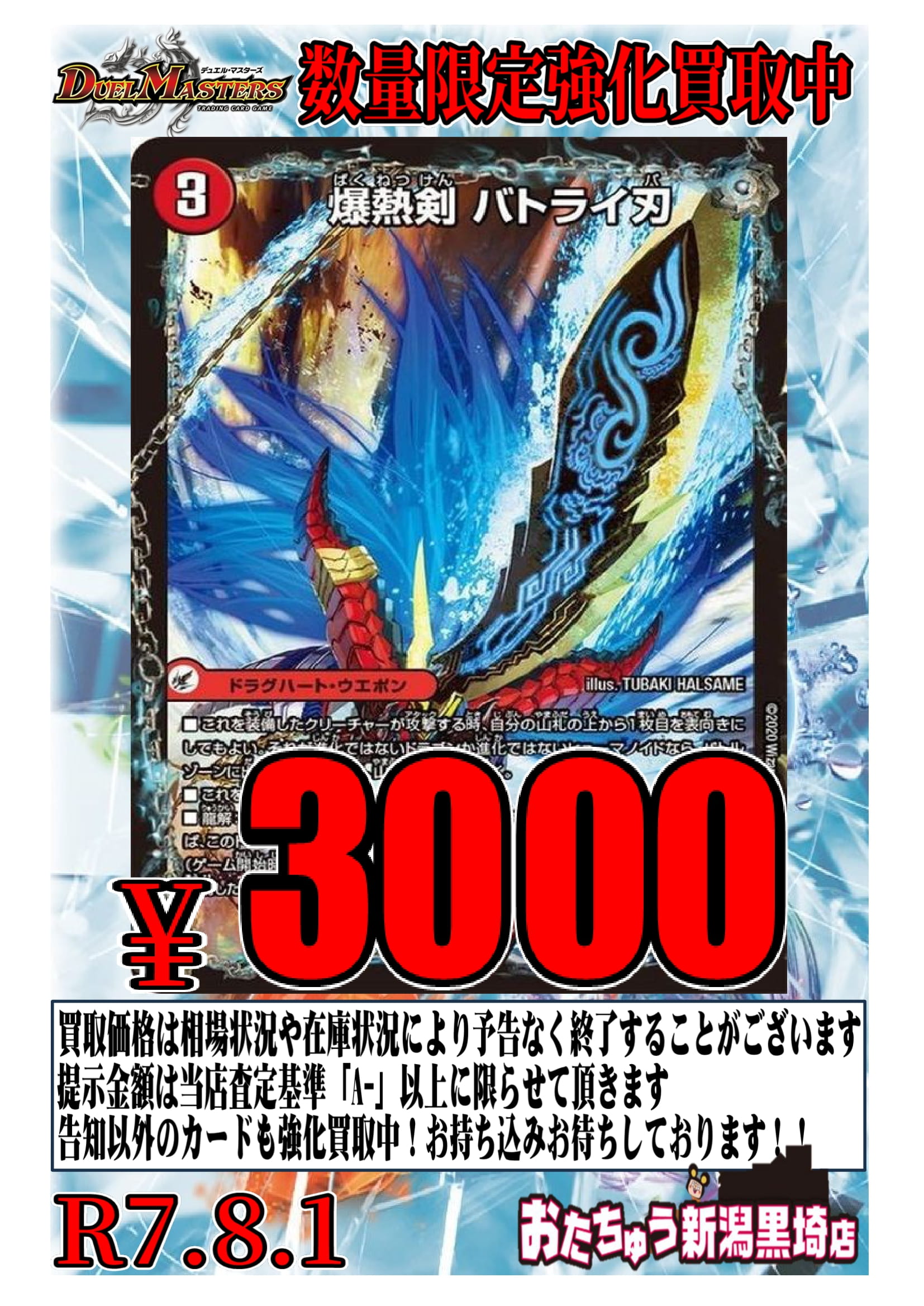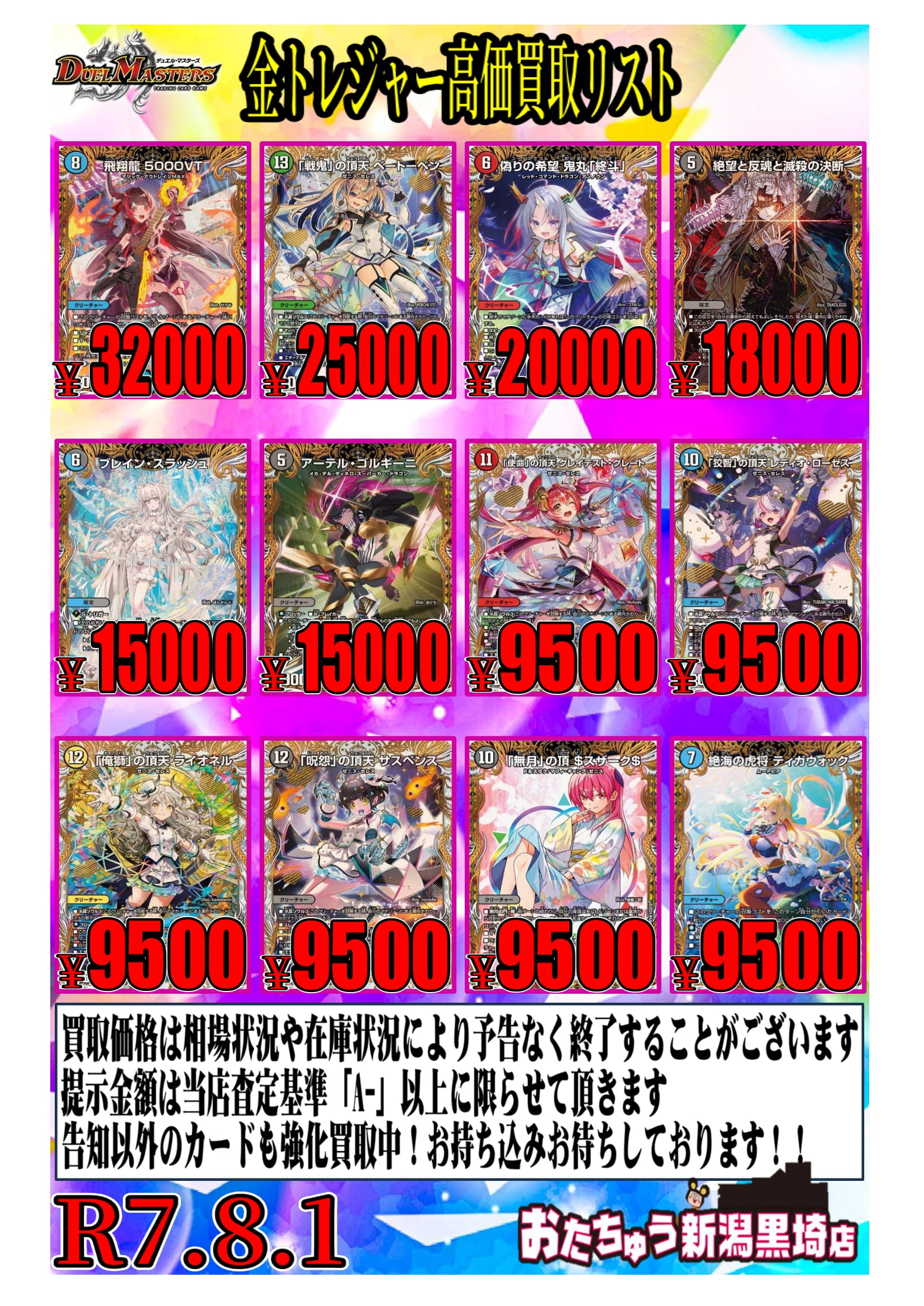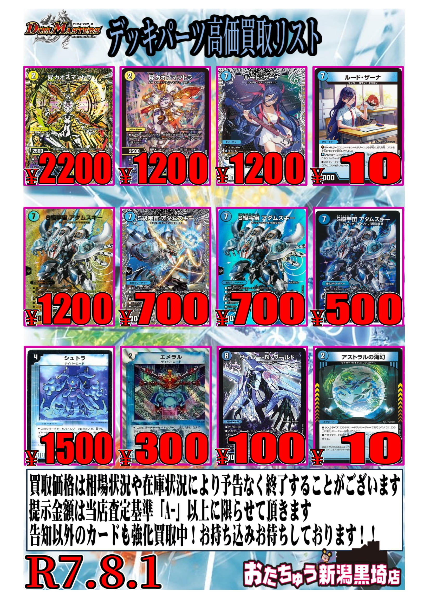 デュエルマスターズの買取時間が16時からと限定されておりご不便をおかけしておりますが是非ともおたちゅう新潟黒崎店へお持ち込みお願いいたします!!!m(*_ _)m