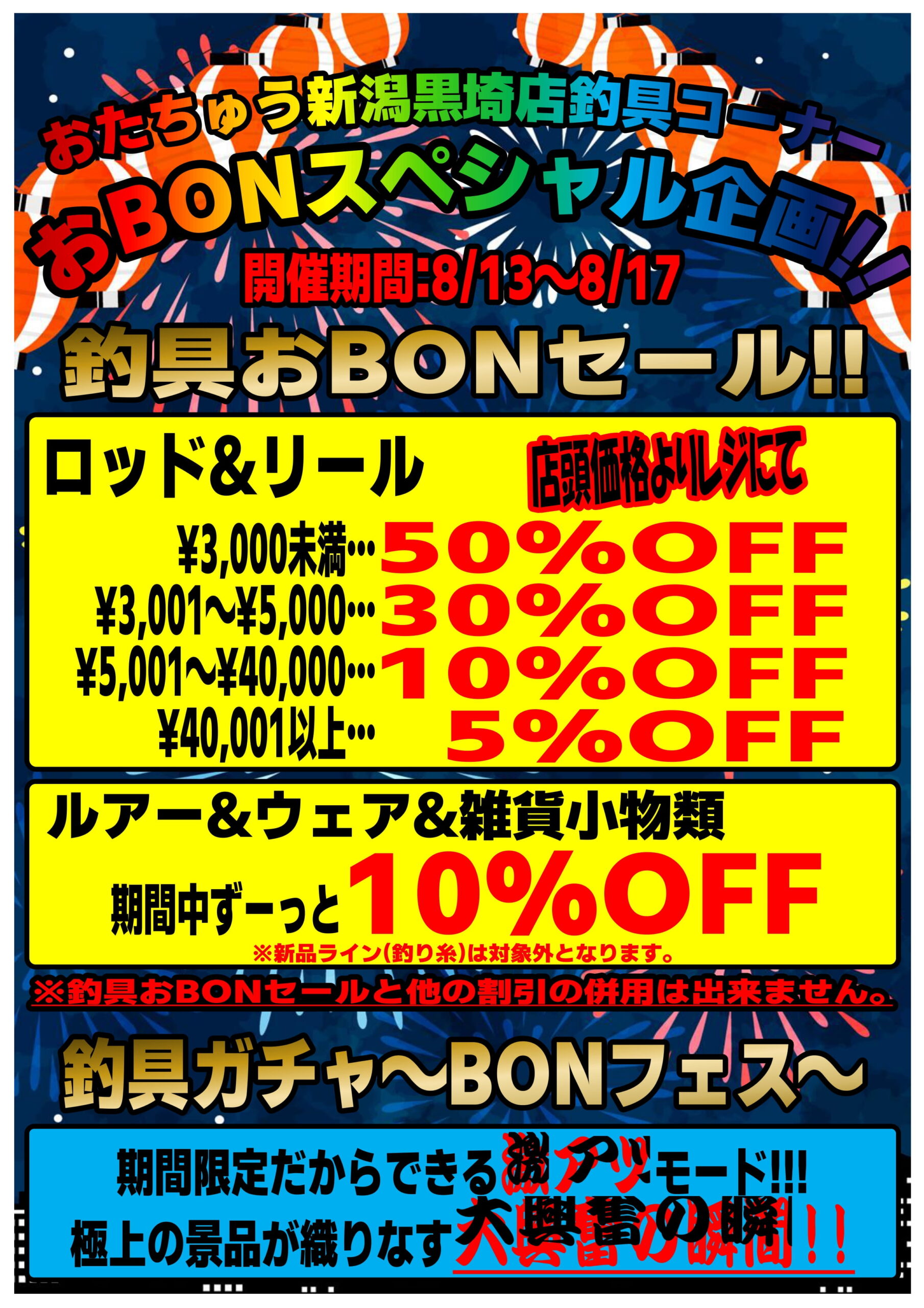 🏮釣具おBONスペシャル企画🏮 2025年8月13日さぁいよいよ本日からスタートします🔥🔥🔥8/13~17限定企画です⚠️ お見逃しのないようにお願いします🙏 8/13はロッカーが激アツらしいです🌞それではご来店お待ちしております💁♂️****************こちら↓もぜひチェックしてみてくださいね♪(*´▽`*)・最新のイベント情報はこちら・最新の買取情報はこちら