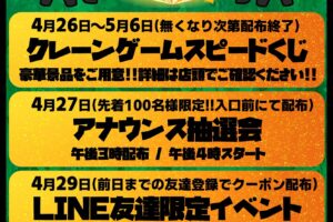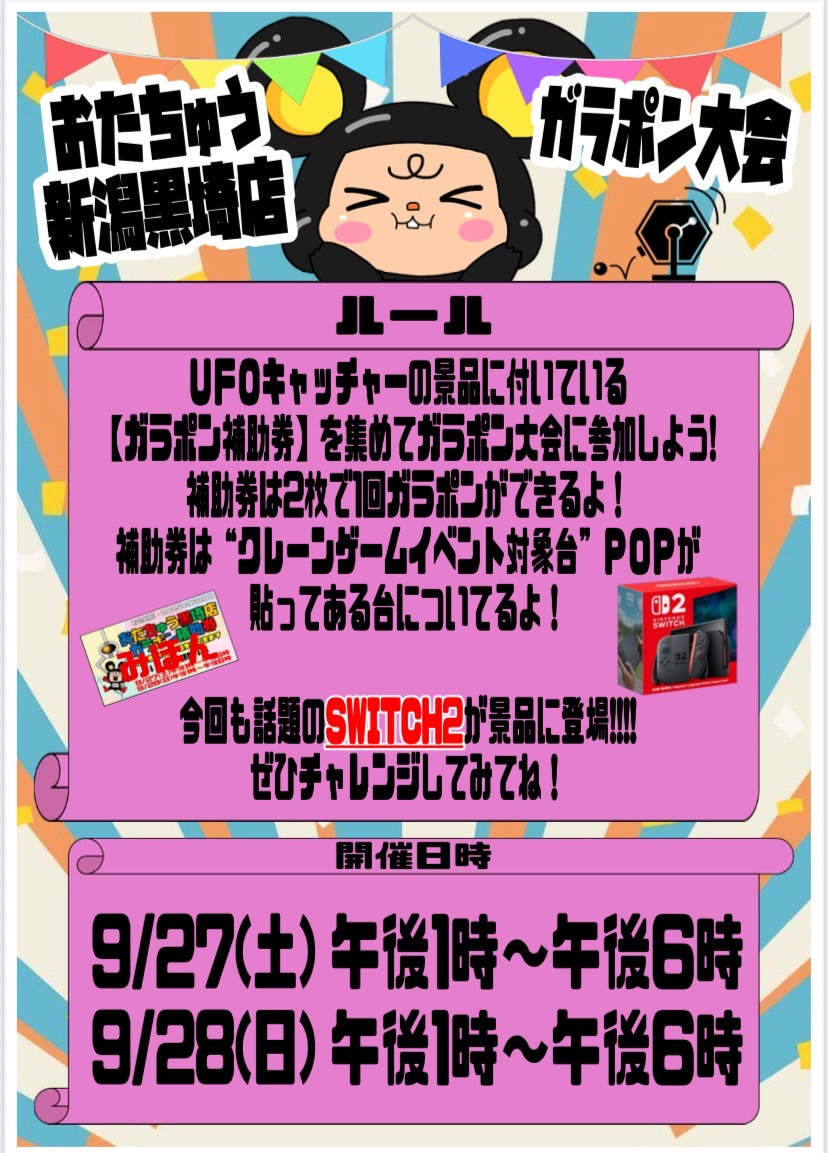 ✨《9月27日・28日》今月もガラポン開催です✨ 2025年9月8日 2025年9月29日皆さまお待ちかね‼️UFOキャッチャーコーナーのガラポン抽選会‼️ 今月もやっちゃうよー‼️‼️ 対象景品についている 補助券2枚で1回ガラポンできます‼️ ぜひたくさんの挑戦お待ちしてます✨ ****************こちら↓もぜひチェックしてみてくださいね♪(*´▽`*)・最新のイベント情報はこちら・最新の買取情報はこちら