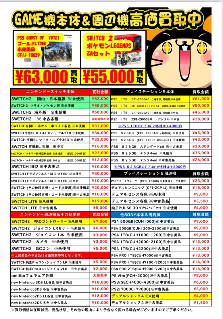 ゲーム機本体周辺機器買取チラシを更新しました!