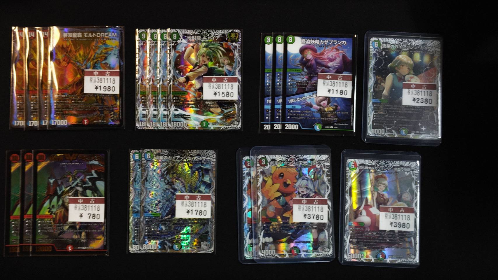 ■デュエルマスターズコーナーから最新情報!■ 2025年11月18日デュエルマスターズコーナーから最新情報!本日、品出しするのはこのカードたち! やっとモルトDREAMが入ります! 他にもレートちょっと高めのカードもあります! 現在ショーケースに入っておりますのでお気軽にお声掛けください! 買取もぜひお待ちしております!※2025/11/18 現在の価格となります。 在庫状況などによってお値段が変動いたします。予めご了承ください。