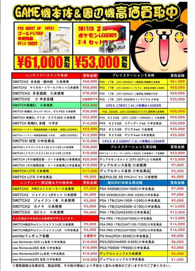 ゲーム機本体周辺機器買取チラシを更新しました!
