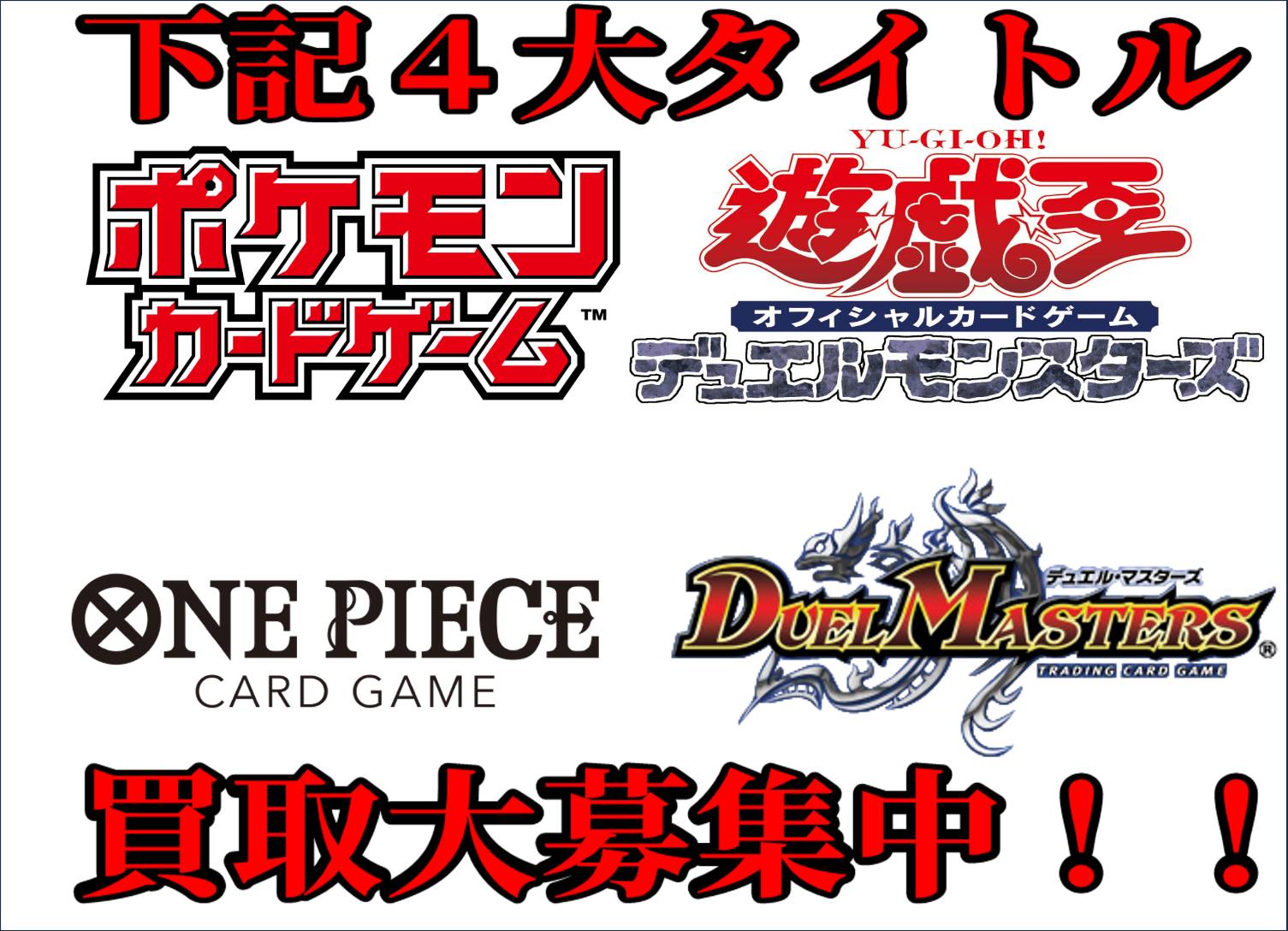 こちらの4タイトルのカードゲームは買取大募集中です!