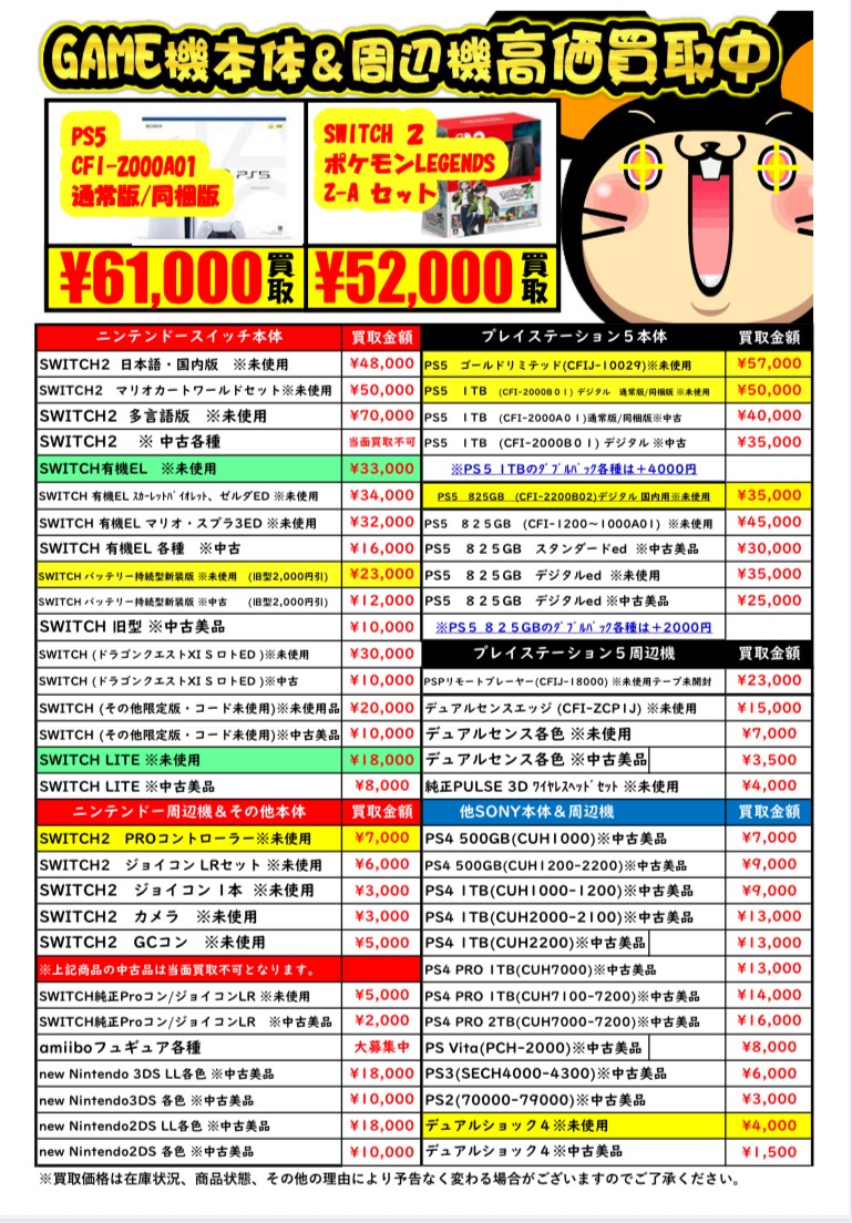 ゲーム機本体周辺機器買取チラシを更新しました!