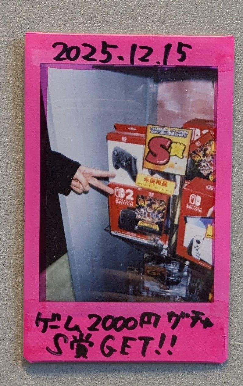 ✨S賞でましたー✨ 2025年12月17日ゲーム2000円ガチャにてS賞が排出されましたー✨ おめでとうとございます🎊🎊🎊 そして、今月から稼働しております、かわいいかわいいシールガチャにて特賞が排出されましたᐢ o̴̶̷̤ ﻌ o̴̶̷̤ ᐢ おめでとうございます😊 まだまだ魅力的なガチャが稼働中です!
