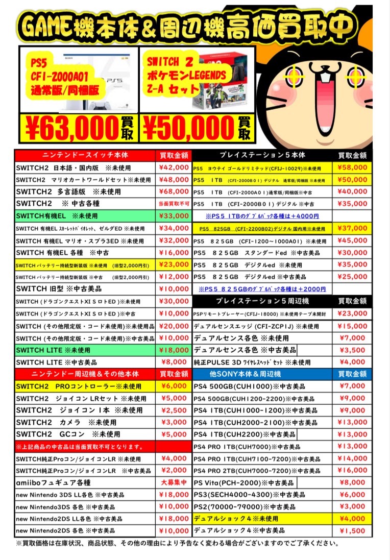 ゲーム機本体周辺機器買取チラシを更新しました!