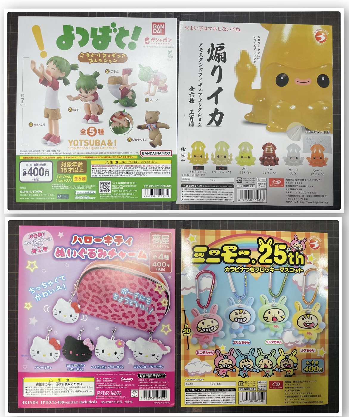 ( ◓ ・ω・) ◓ガチャガチャ入荷情報🪄💫 2026年2月7日本日2/7ガチャガチャ新商品追加いたしましたー👏🤍🧸よつばと!🧸 こまどりフィギュアコレクション🖕煽りイカ🖕🦑 メモスタンドフィギュアコレクション🎀ハローキティ🎀 ぬいぐるみチャーム🐰ミニモニ 25th🎤 カラビナつきフロッキーマスコット ミニモニ世代の担当者はもちろんGET予定です🥹♡ フロッキー素材でかわいいのでぜひ皆さんもGETしに 来てくださいっ🫶お待ちしております🙇♀️