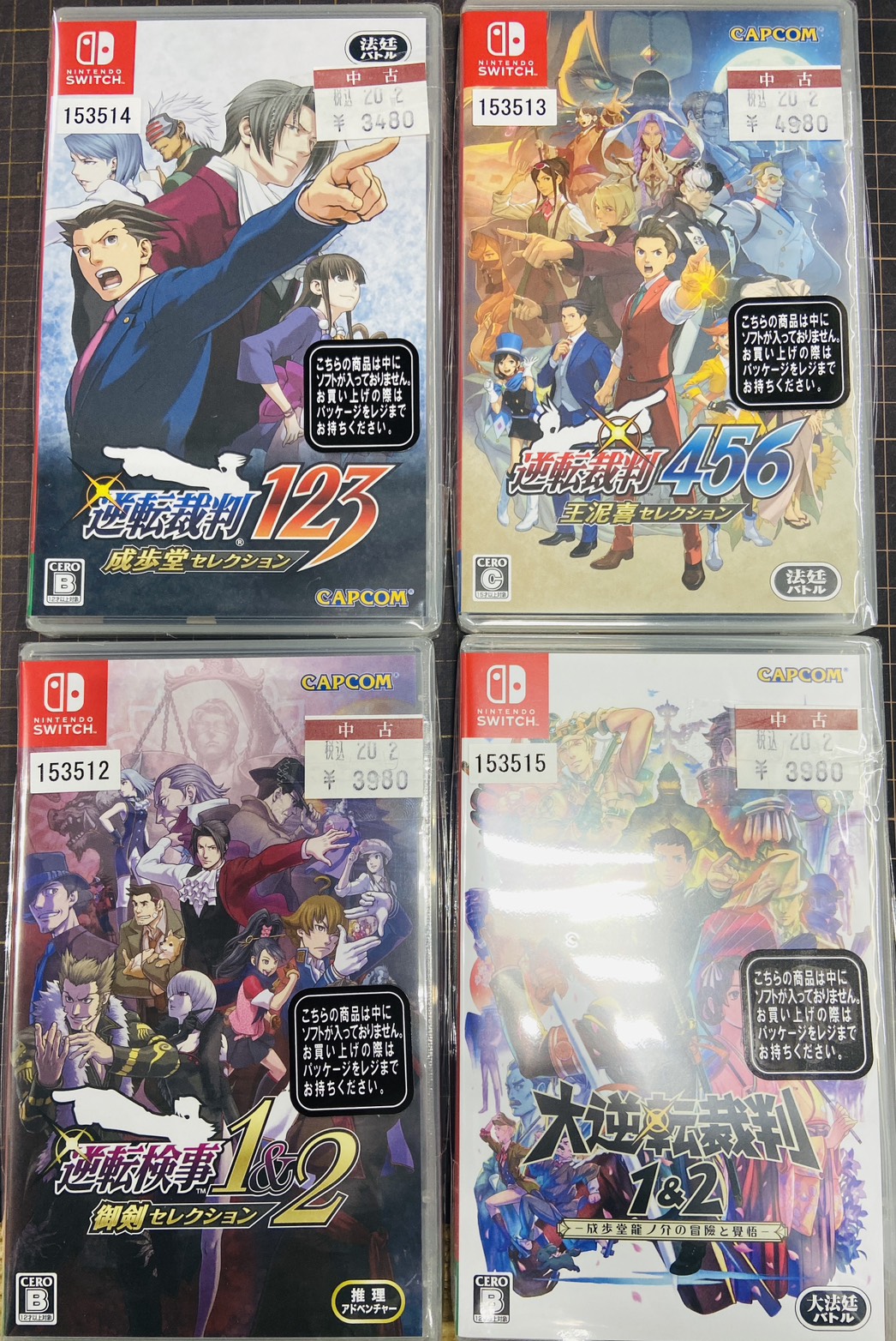 ■ゲームソフト品出ししました!■ 2026年2月14日スイッチの逆転裁判シリーズのソフトを買取にお持ちいただきましたので 今から品出しします! 3DSの時から変わらず面白いですよね✨ お持ち込みくださったお客様 ありがとうございます🙏皆様のご来店、心よりお待ちしております!※2026/2/14現在の価格となります。 在庫状況・状態によってお値段が変動いたします。予めご了承ください。