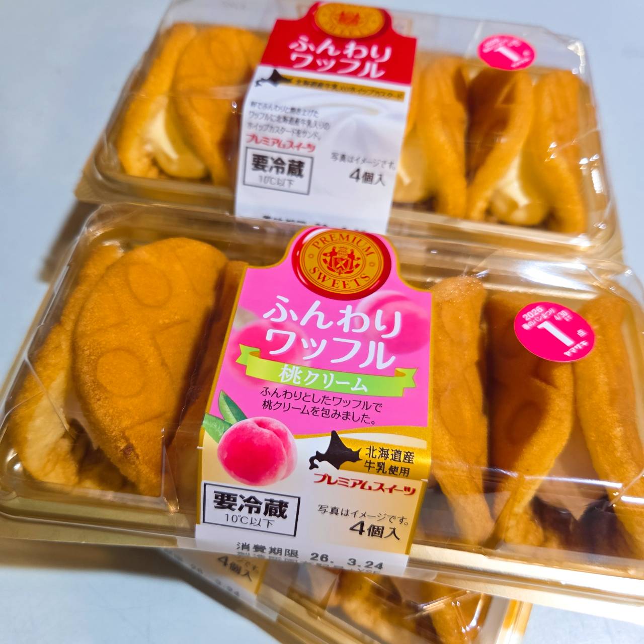 初登場スイーツのご紹介😋✨ 2026年3月21日ふんわりワッフル🧇 入荷しました🥹💖🍑桃クリームワッフル 🐮北海道牛乳入りカスタードクリームワッフル2パックずつ、計4パックのセットなのでたくさん食べれちゃいます👶❤おいしいワッフル是非ゲットしてくださーい🙌数量限定につきお早めにどうぞ❣️皆様のご来店お待ちしております🫶✨