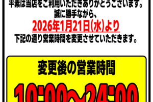 ★営業時間の変更について★ ★営業時間の変更について★★ いつもおたちゅう新潟黒埼店をご利用頂きありがとうございます! 2026年1月21...