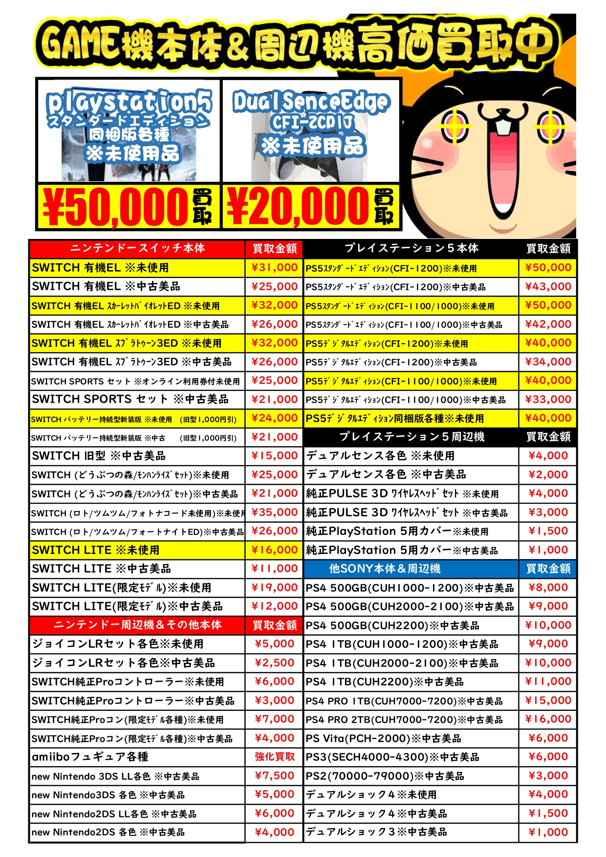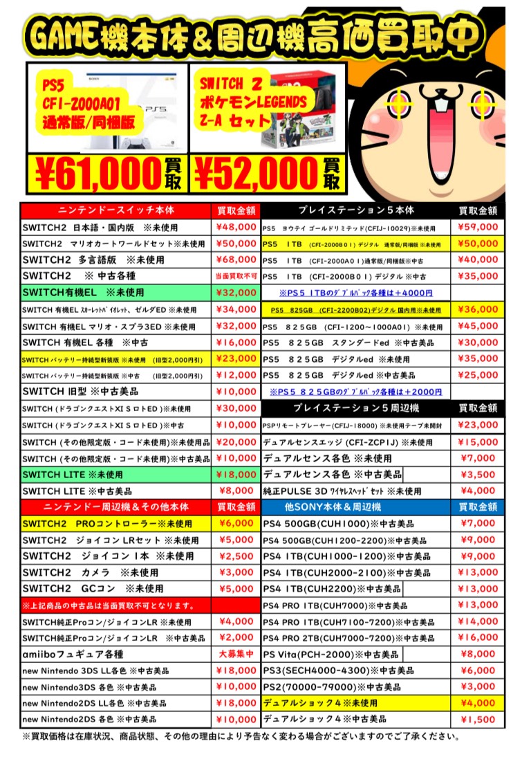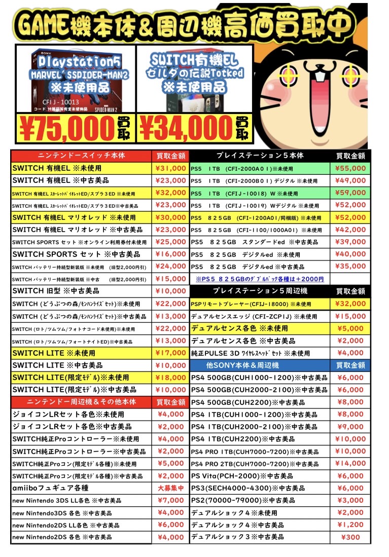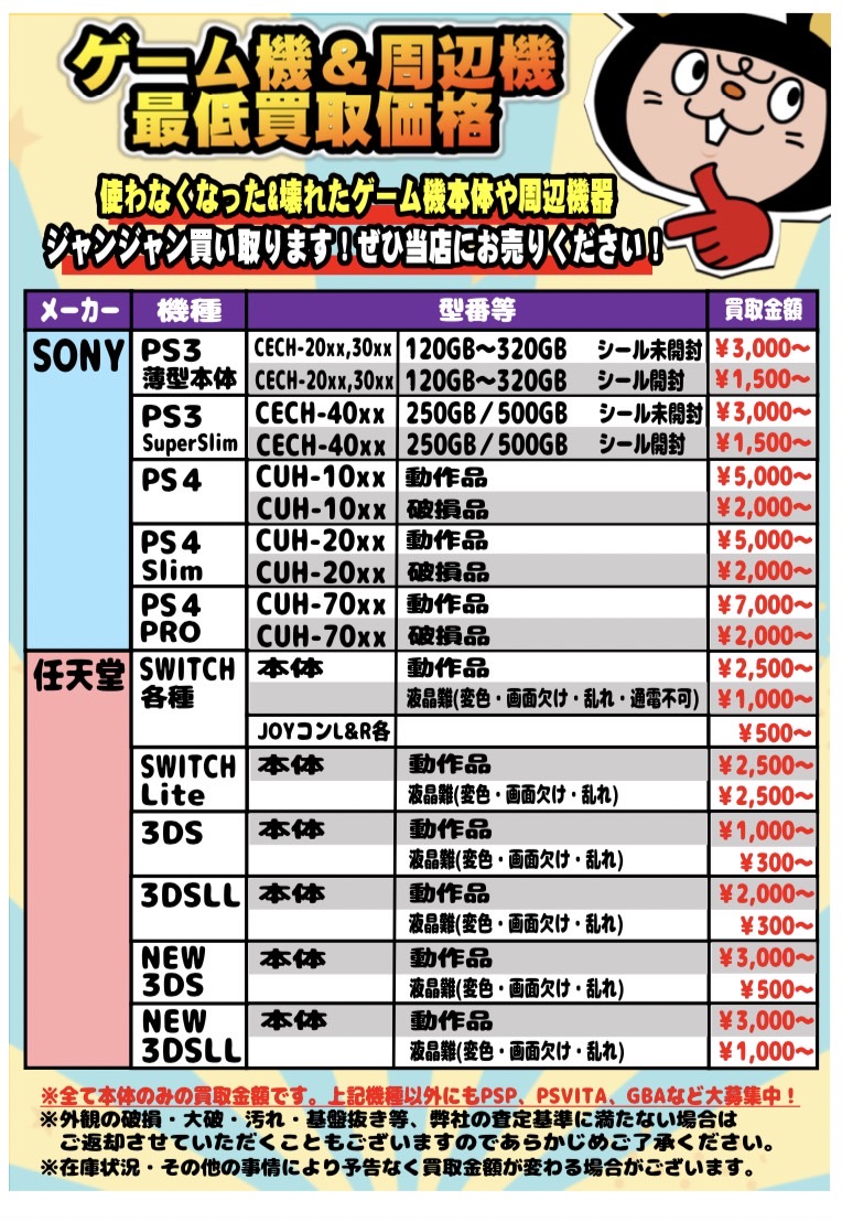ゲーム機本体周辺機器買取チラシを更新しました! ゲーム機本体周辺機器買取チラシを更新しました! 特にスイッチ有機ELモデル 未使用品ネオンを大募集中です‼️...