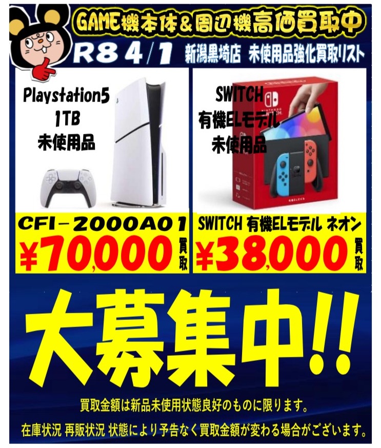 ゲーム機本体周辺機器買取チラシを更新しました! ゲーム機本体周辺機器買取チラシを更新しました! 特にps5、スイッチ有機ELモデルの 未使用品を大募集中です‼...
