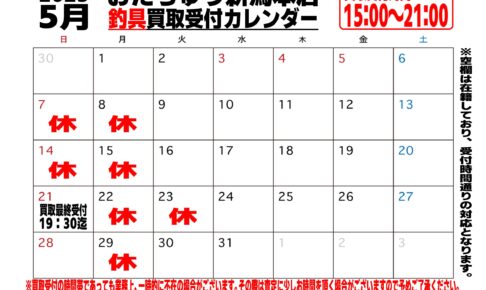 買取情報釣具コーナーより🎣 3月度チラシとなります💪💪💪 新製品の発売も待ち遠しいですね🐟 また、今月より担当者査定となりますのでカレンダーを確認して頂きお持ち込みください🙇♂️ お待ちしております💁♂️ …