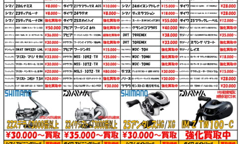 買取情報111/21〜より勤務時間変更に伴い、 釣具買取カレンダーを変更させて頂きました。🗓 11/26以降は決まり次第、公式HP及びインスタグラムにてお知らせ致します。 また、買取受付時間中であっても他業務等で一…