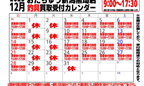 釣具更新遅くなり申し訳ありません🙇♂️ 12月釣具買取カレンダー更新しました🗓 また、在籍時間及び買取受付時間中であっても他業務等や休憩等で一時的に不在の場合がございますので予めご了承ください💦 お急ぎの方や来店日時がお決…